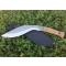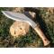 Sa forme kukri unique place une grande partie du poids sur l'avant, rendant le fendage du bois et la coupe plus faciles et efficaces. La poignée en bois de noyer assure une prise en main confortable et sécurisée, tandis que l'étui en cuir protège la lame et facilite son transport.