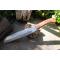 Kukri Mini Duku Parang Machete 1075 Carbon Blade Rosewood Handle Leather Sheath - Longueur totale 42cm - Longueur de lame 26cm - Epaisseur de lame 5mm - Longueur du manche 15cm - Lame en acier carbone 1075 - Dureté 56-58 Rockwell - Lame de type parang - Construction d'une seule pièce - Full tang - Plaquettes du manche en bois de rose - Etui cuir - Fabric artisanale - Inspiré du Condor