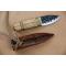 Le couteau Condor Ötzi est conçu avec une lame en acier au carbone profilée et lisse en 1095 et un manche en bois recouvert de fil de laiton