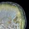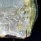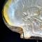 Un coquillage en nacre entièrement gravé, très complexe avec un motif de crâne humain. Le coquillage reflète magnifiquement la lumière dans toutes sortes de couleurs. Les mots ne peuvent pas décrire la beauté de ce coquillage lorsque le soleil le frappe par derrière.