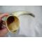 Magnifique grande corne de boeuf de couleur majoritaire blanche.