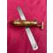 Corne à poudre noire bouchon à trois dosettes, automatique, cuivre, laiton, légère, bosse à l'arrière. Bon état général.