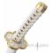Magnifique reproduction du coupe papier du katana de Zenitsu Agatsuma tire du manga Demon Slayer. La lame est en acier stainless 440 inoxydable. Longueur total : 25cm Longueur lame : 17cm Poids epee et fourreau : 48grs Poids epee : 34grs Livre avec un presentoir en ABS.