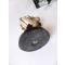Coupe en coquillage nacré entouré de vignes sur socle en pierre noir