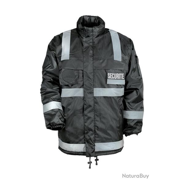 Ce coupe-vent avec bandes rétro-réfléchissantes est doublé polaire 100 % polyester et dispose de coutures étanches, de cinq poches extérieures, de cinq poches intérieures, d'une poche dos avec bande amovible "sécurité" et flap "sécurité" et d'un porte-écusson amovible.