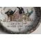 Coupelle humoristique en céramique, "L'Alcool tue lentement... On s'en fout, on n'est pas pressé", illustrée de 3 épicuriens et d'un verre d'absinthe surmonté de sa cuillère avec son sucre. Poterie du Vieux-Montmartre par Platon (Platon Argyriades 1888-1968) tirage limité bon état