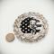Coupelle décorative pin-up Ø 9.5 cm · 93 g Métal argenté sur laiton, bordure rococo Betty Boop pin-up classique devant drapeau américain, gravée sur métal argenté Dos marqué n°01/03 Support circa années 60-70 ?? Fabrication artisanale en France