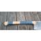 Manche recouvert de paracorde et d'une lanière de cuir large , la prise en main est agréable, il peut servir à couper toutes sortes de bois , d'outil de jardin , de defense , et de protection, il est impressionnant par son volume et sa ligne guerrière .