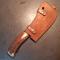 Vend magnifique couperet (feuille de boucher), lame de 15,5cm, longueur totale de 28,3cm, épaisseur de 5,5mm, entièrement restaurée, lame martelée, manche en bois de cerf et laiton. La lame présente quelques petites tâches de rouille très légères (en surface). L'étui est en cuir pleine fleur de 2,5mm d'épaisseur avec un motif feuille de chêne. L'ensemble est en très bon état.