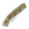 Couteau 1515 "Alsac", lame poli glace à cran intérieur, manche avec motif, étui cuir.
