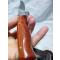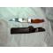 Ce couteaux efficace et élégant vous accompagnera à la chasse et en dîner. Sa lame fine de 3 mm est tout à fait redoutable pour le dépeçage et la découpe.Le manche en santal rouge vous ravira par ces chatoiements au soleil. L étui moulé sur mesure et cousu main par mes soins vous permettra de l’emporter partout , à la ceinture ou dans un sac.