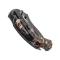 Couteau Herbertz "595012", lame noire à cran intérieur et à bouton double, manche 12 cm motif tête de mort avec décapsuleur en bout, clip.