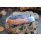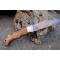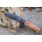 Couteau pour dépecer le petit gibier - Longueur fermé 9.5cm - Longueur ouvert 17cm - Platines & mitres du manche en nickel - Plaquettes du manche en bois - Trou dans le manche pour dragonne - Ressort du dos guilloché - Lame en damas 128 couches avec crochet - Dos de la lame guilloché - Les dessins de la lame sont comme une empreinte, ils sont uniques - Sécurité lockback - Ouverture à 2 mains