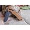 Couteau Tactical Ouverture Assistée Tanto pliant - Longueur fermé 11.5cm - Longueur de lame 8.5cm - Lame en acier 440 - Lame type tanto combo edge finition stonewash - Platines en acier - Plaquettes du manche en brown FRN - Ouverture d'une main - Système de sécurité button lock & push button - Clip de poche