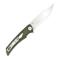Lame en acier D2 satiné avec "flipper" et cran intérieur, d'une longueur de 8 cm.