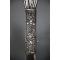 Poignée recouverte de tôle d'argent travaillé en repoussé et à décoration de picots et filigranes.