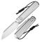 L'Artisan Cutlery Holm est un couteau pliant EDC haut de gamme combinant des matériaux de qualité supérieure et une fonctionnalité moderne. Sa lame Wharncliffe en acier CPM S90V avec une finition stonewash offre une performance de coupe exceptionnelle et une excellente résistance à l'usure et à la corrosion. Le manche en titane gris est à la fois robuste et léger, offrant une prise en main équilibrée. Le système de verrouillage Button Lock est sécurisé et facile à utiliser. L'ouverture est remarquablement fluide grâce à l'intégration de roulements à billes en céramique, signature de la qualité Artisan Cutlery. Son design ambidextre le rend adapté à tous les utilisateurs.