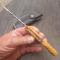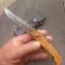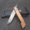 Couteau Artisanal Piémontais Damas Manche en Bois d OLIVIER avec Étui en cuir noir