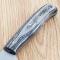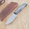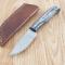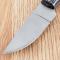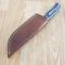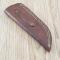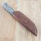 Le manche est composé de plaquettes en Black Wood (bois noir), offrant un contraste élégant avec la lame satinée. Sa forme ergonomique permet une prise en main stable et confortable, essentielle pour les travaux de coupe prolongés. Ce couteau est accompagné de son étui en cuir brun de haute qualité, conçu pour un port à la ceinture sécurisé et un accès rapide en toutes circonstances.