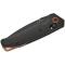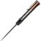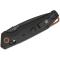 Le Katakt II Auto est doté d'une lame Drop Point de 8,05 cm en acier inoxydable M390, connu pour son excellente rétention de tranchant et sa résistance à la corrosion. La lame présente un tranchant Combo, une finition Black DLC et un affûtage plat, avec une dureté de 60-62 HRC. Le mécanisme d'ouverture est automatique, actionné par un Slide Lock (verrouillage coulissant) ambidextre qui engage la lame avec un "clic" satisfaisant. Le manche est fabriqué en aluminium noir, complété par un anneau de pivot et une entretoise en cuivre, ajoutant une touche distinctive. Le couteau est équipé d'un clip de poche réversible en acier inoxydable (tip-up, port droit/gauche) et d'une boucle de cordon de sécurité, le rendant parfaitement ambidextre et prêt à l'emploi.