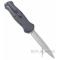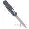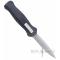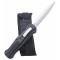 Magnifique couteau automatique de qualite. Mecanisme permettant de faire sortir la lame ou de la faire rentrer sur simple pression d'un bouton. Lame affutee a double tranchant en acier stainless 440. Clip pour ceinture integre et brise vitre. Dimensions: Ouvert : 23cm Ferme : 12,5cm Lame : 10cm Poids : 200grs Finitions parfaites, produit de grande qualite. Livre avec petite sacoche en nylon pour port a la ceinture.