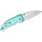 Couteau Hogue A01 Microswitch AUTO CPM-154 Drop Point Blade Aquamarine Handles Clip Made USA pliant - Ouverture latérale Push Button - Longueur ouvert 16.76cm - Longueur fermé 10.16cm - Longueur de lame 6.98cm - Epaisseur de lame 3mm - Lame de type Wharncliffe plain edge finition stonewash - Affutage hollow - Lame en acier CPM-154 - Dureté 57-59HRC - Manche en aluminium Aquamarine - Ouverture d'une main - Système de sécurité Plunge Lock - Clip de poche - Made In USA