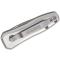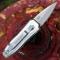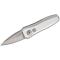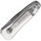 Le mécanisme d'ouverture automatique par bouton-poussoir permet un déploiement rapide et fluide de la lame. Le bouton est encastré et au même niveau que le plat du manche, servant ainsi de dispositif de sécurité pour prévenir tout déploiement accidentel. Le manche, y compris l'entretoise intégrée, est fabriqué en aluminium brut, un matériau léger et durable.