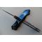 Couteau automatique à pression, design agressif Pliant de Poche avec Sa lame en acier inoxydable tant aux lignes tendues est à ouverture facile mesure 10,5 cm elle est en acier inoxydable crantée et possède une sécurité, manche de 14 cm en acier bleu gravé, et poids 115 g. Sécurité anti-ouverture & anti fermeture. Ouverture très rapide à l'aide d'un bouton poussoir. Trou pour lanière, et Clip ceinture sur le manche. Neuf livré comme vous le voyez ni + ni -. Belle affaire pour collectionneur qui souhaite un très beau couteau de haute qualité, idéal dans une belle collection. Le couteau dédié aux pêcheurs, bricoleurs, campeurs, sculpteurs…L’outil idéal pour apprêter et écorcher un gibier…
