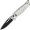 Couteau Piranha Auto Amazon Tactical Silver Alum Handle 154CM Blade Button Lock Clip USA pliant - Système à ouverture automatique latérale - Longueur ouvert 20cm - Longueur fermé 11.11cm - Longueur de lame 8.89cm - Epaisseur de lame 3mm - Lame de type drop point plain edge finition black - Affutage flat - Lame en acier 154CM - Dureté 59-60HRC - Plaquettes du manche en aluminium silver - Trou dans le manche pour dragonne - Ouverture automatique d'une main avec le bouton situé sur le manche - Sécurité button lock - Clip de poche - Made In USA