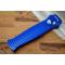 Couteau EDC Tactical Piranha Automatic Bodyguard Tactical Blue S30V Blade Aluminium Handle Button Lock Clip USA pliant - Ouverture automatique latérale - Longueur ouvert 19.55cm - Longueur fermé 11.17cm - Longueur de lame 8.38cm - Epaisseur de lame 2.79mm - Lame en acier CPM S30V - Dureté 60-61 RC - Lame de type spear point plain edge finition stonewash - Manche en aluminium 6061-T6 bleu - Ouverture d'une main avec le bouton sur le manche Push Button - Système de sécurité Button Lock - Clip de poche