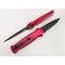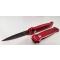 Couteau EDC Tactical Piranha Automatic Bodyguard Tactical Red S30V Blade Aluminium Handle Button Lock Clip USA pliant - Ouverture automatique latérale - Longueur ouvert 19.55cm - Longueur fermé 11.17cm - Longueur de lame 8.38cm - Epaisseur de lame 2.79mm - Lame en acier CPM S30V - Dureté 60-61 RC - Lame de type spear point plain edge finition black - Manche en aluminium 6061-T6 rouge - Ouverture d'une main avec le bouton sur le manche Push Button - Système de sécurité Button Lock - Clip de poche
