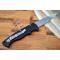 Couteau Automatique Piranha Fingerling Automatic Black Aluminium Handle 154CM Blade Button Lock Clip USA pliant - Système à ouverture automatique latérale - Longueur ouvert 14.92cm - Longueur fermé 8.57cm - Longueur de lame 6.35cm - Epaisseur de lame 2.28mm - Lame de type drop point plain edge finition Satin - Affutage flat - Lame en acier 154CM - Dureté 60-61HRC - Manche en aluminium Black 6061-T6 - Ouverture d'une main avec le bouton situé sur le manche Push Button - Système de sécurité Button Lock - Clip de poche