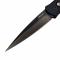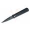 Ce modèle (921) est équipé d'une lame de type Spear Point en acier inoxydable de qualité supérieure 154CM. La lame reçoit un revêtement DLC noir (Diamond-Like Carbon) qui augmente sa durabilité et sa résistance à la corrosion tout en lui conférant une finition tactique discrète. Le manche est usiné dans un bloc d'aluminium T6-6061 noir, offrant une robustesse et une légèreté remarquables. L'ouverture est instantanée par un simple bouton poussoir, et le couteau est sécurisé par un Button Lock.