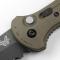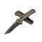 Lame : de type Tanto renforcé, en acier de haute qualité CPM-D2 (dureté 60-62 HRC). Finition Noir cobalt Cérakote. Tranchant semi-cranté avec logo Benchmade sur la lame.