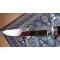 Ce couteau de travail à main est fait en matériels de bonne qualité. Beau design et une bonne équilibre. Le couteau est fabriqué doucement et fièrtement. La lame est polie en bon mirroir. Forgé avec l'acier XT70 la pointe coupante 61-62 HRC,le corps de la lame 56-58 HRC , ne rouille jamais ,mais il faut etre soigne. Le poignet du couteau est fait en corne du buffle noire. La lame est taillé proffessionellement sur pierres aquatiques Japonaises. La gaine est fabriqué en peau de buffle avec le logo ,fait à main.