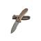 Ce couteau pliant Benchmade Presidio II 570 possède une lame de 9,5 cm de long, d'une épaisseur de 3 mm elle dispose d'une hauteur de 2,9 cm. Cette lame mixte de forme Spearpoint avec une finition mate est conçue avec de l'acier CPM-M4 et offre une dureté de 60 HRC. Cet acier est très apprécié par les connaisseurs. Il est en effet très robuste et facile à aiguiser, ce qui ne va pas souvent de paire. Cet acier étant sensible à la corrosion, il a été appliqué un revêtement Cerakote gris sur la lame. Ce couteau possède également un manche en aluminium anodisé de couleur bronze magnifique. Les reliefs de ce dernier permettent une très bonne prise en main.