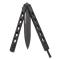 Couteau papillon BLACKHAWK! Dark Angel Butterfly D2 Black Spear Point Blade Stainless Handles USA pliant - Longueur ouvert 25.40cm - Longueur fermé 14.60cm - Longueur de lame 10.79cm - Epaisseur de lame 3mm - Lame de type spear point plain edge finition black - Lame en acier D2 - Dureté 59-61HRC - Manche en acier ajouré - Blocage de lame Spring-loaded latch - Clip de poche - Made USA
