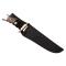 Ce couteau de chasse classique est équipé d'une large garde plaquée or, qui protège efficacement la main du tranchant.