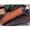 Le manche est réalisé en cuir empilé (Stacked Leather), offrant une prise en main chaude, naturelle et extrêmement confortable, même lors d'une utilisation prolongée. Cette finition traditionnelle est complétée par une garde et un pommeau en aluminium poli, renforçant le style "vintage" et assurant un équilibre parfait en main. Pensé pour les chasseurs exigeants, le Gladstone Hunter est un outil polyvalent, aussi à l'aise pour le dépouillage du gibier que pour les tâches de campement. Comme toutes les pièces de la marque, il est fabriqué à la main aux États-Unis et bénéficie d'une garantie à vie.