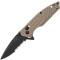 Couteau Tactical Backup EDC Bear OPS Rancor IX D2 Black Serrated Blade Desert Zytel Handles Crossbar Lock USA pliant - Longueur ouvert 18.28cm - Longueur fermé 11.20cm - Longueur de lame 7.18cm - Epaisseur de lame 2.28mm - Lame de type drop point Serrated finition black - Lame en acier D2 - Dureté 59-61HRC - Platines en acier - Plaquettes du manche en desert zytel - Trou dans le manche pour dragonne - Ouverture d'une main avec le thumb & le flipper - Système de sécurité Crossbar Lock - Clip de poche - made In USA - Poids 73grs