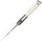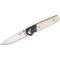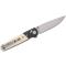 Sa lame robuste en acier D2, un acier populaire pour les couteaux de poche à usage quotidien, confère à ce couteau un excellent équilibre entre abordabilité et ténacité. La lame de style Drop Point arbore une finition satinée et se déploie sans effort à l'aide des thumb studs pour une ouverture à une main. Elle se verrouille fermement grâce à un mécanisme de verrouillage Crossbar, assurant un déploiement facile et une sécurité optimale. Le manche, d'une transition fluide avec la lame, est composé d'une combinaison de fibres de carbone et d'os lisse blanc, offrant une esthétique élégante et une prise en main confortable. Un clip de poche en acier inoxydable est inclus pour un transport pratique.