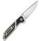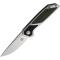 Le manche est conçu en acier inoxydable robuste, sublimé par des plaquettes (inserts) en G10 Noir et Vert, offrant une esthétique moderne et une prise en main texturée. Ce couteau utilise un mécanisme Liner Lock fiable et une fluidité d'ouverture remarquable grâce à son ouverture flipper (Extended tang). Son clip de poche profilé permet un port quotidien confortable et discret.