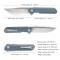L'ouverture est ultra courte, la rétention de la lame est plutôt dure, j'aurais plutôt aimé quelque chose de plus souple, surtout que la lame est courte et ne s'ouvre qu'à 90°, elle ne demande pas une force d'ouverture puissante. Comparé aux couteaux droits qui s'ouvrent sur 180°.