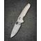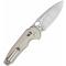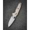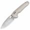 Le manche est composé de plaquettes en G10 Tan (Sable), un matériau composite ultra-résistant qui offre une texture antidérapante. La grande innovation de ce modèle est son mécanisme de verrouillage Button Lock, permettant une fermeture ultra-rapide et sécurisée d'une seule main sans jamais placer les doigts sur la trajectoire de la lame. L'ouverture est d'une fluidité déconcertante grâce au système de roulements à billes en céramique, activable via un Flipper ou un trou de pouce (Thumb Hole).