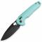 Le manche se pare de plaquettes en G10 Mint Green (Vert Menthe), offrant un look frais et moderne sans sacrifier la solidité ni le grip. Équipé d'un mécanisme Button Lock, il offre une manipulation fluide, sécurisée et extrêmement rapide d'une seule main. L'ouverture sur roulements à billes en céramique est d'une douceur absolue, activable via le Flipper ou le trou de pouce.