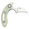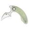 À la base, les couteaux que je porte tous les jours ne sont pas du tout prévus pour me défendre. Mais si un agresseur a le malheur de sortir une lame, alors ce sera la gazeuse en premier et si ce n'est pas suffisant, en cas de vie ou de mort uniquement, il aura l'honneur de goûter à cette lame d'un tranchant incroyable ! Une griffe comme jamais je n'en avais vu. Ce n'est pas un Karambit, aucun rapport, la prise en main est bien plus confortable et donne permet de ne pas risquer de le lâcher.
