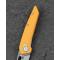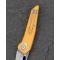 Manche en G10 jaune léger et offrant une prise en main solide et confortable.