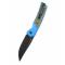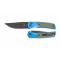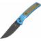 Le manche de 11,10 cm est une pièce d'ingénierie remarquable : il combine des plaquettes en Manche Aluminium anodisé Bleu Mat (Blue Matte) avec des inserts (Inlays) en G10 Vert OD (OD Green). Ce mélange de matériaux offre non seulement un look tactique unique, mais aussi une texture de prise en main supérieure. L'ouverture par Thumb Stud sur roulements à billes est d'une fluidité totale, tandis que le verrouillage par bouton (Button Lock) garantit une sécurité parfaite et une manipulation ludique.