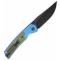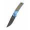 Couteau Bestechman Icebreaker Lame Acier D2 Manche Alu Bleu Mat & G10 Vert OD Button Lock BTKMK16E