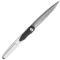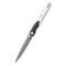 Le manche est composé de plaquettes en Manche G10 bicolore Noir & Blanc, offrant un contraste moderne et une prise en main sûre. D'une longueur totale de 19,02 cm (10,27 cm fermé), ce couteau utilise un système de verrouillage Liner Lock fiable. L'ouverture est d'une fluidité exemplaire grâce aux roulements à billes en céramique et s'active via une ouverture flipper (Front Flipper) ou par le trou de lame.